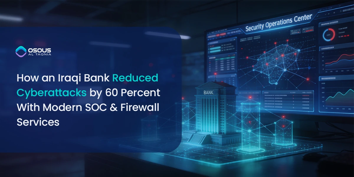 This case study explains how Osous Al Taqnia helped a leading Iraqi bank reduce cyberattacks by 60 percent in under six months by modernizing its cybersecurity framework, implementing next-generation firewall controls, and deploying a 24/7 Security Operations Center (SOC).